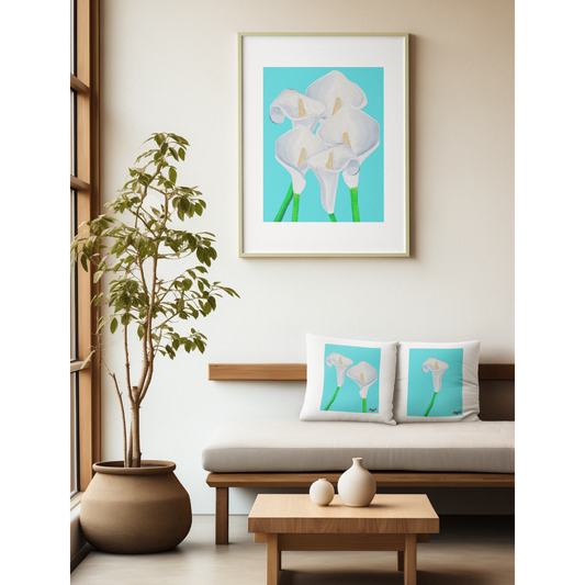 Canna Lily Art - Hand painted Premium Art Prints - Original Floral Art - Blue Floral