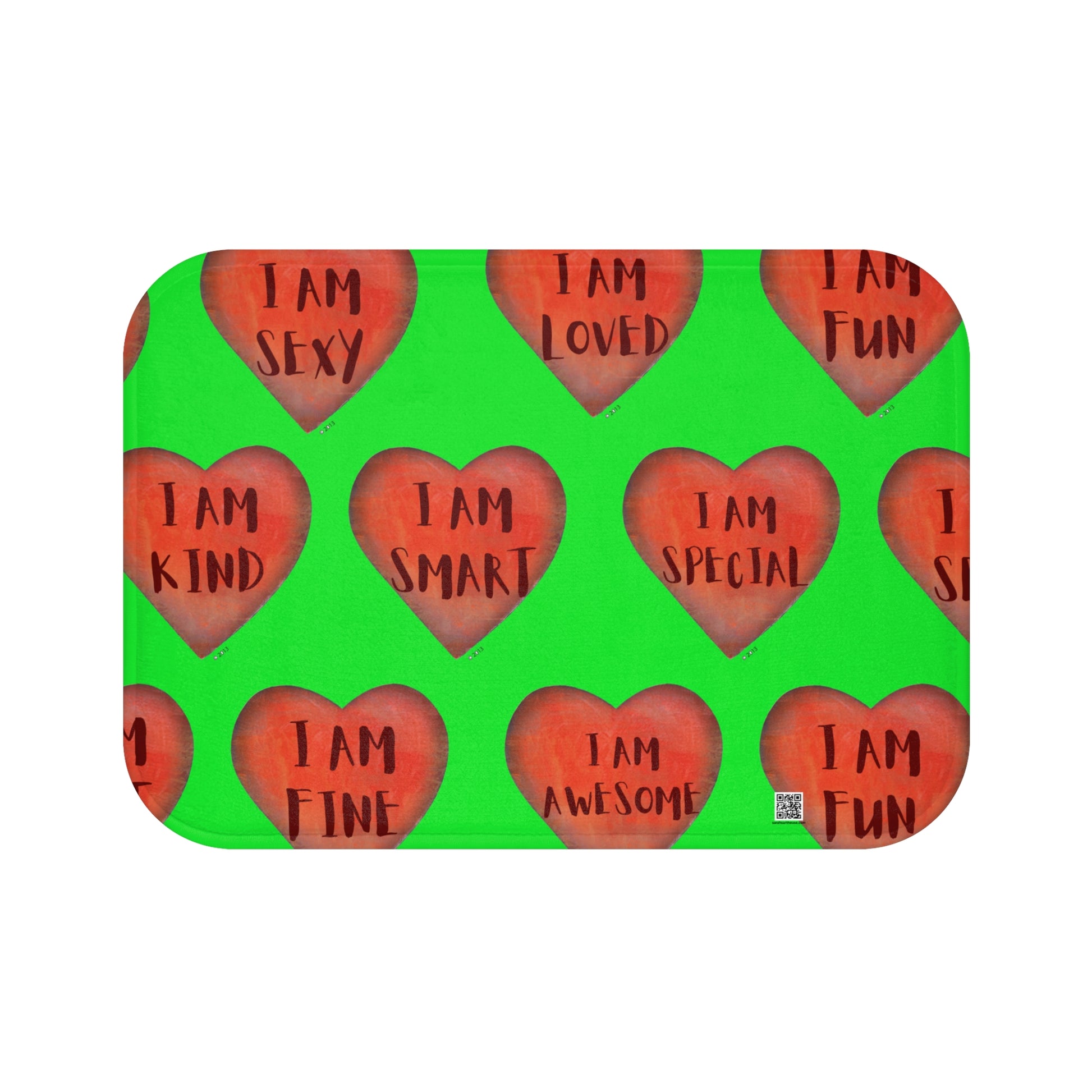 Bath Mat - Green Heart Bathroom mat - Unique Bath mat - Motivational Hearts