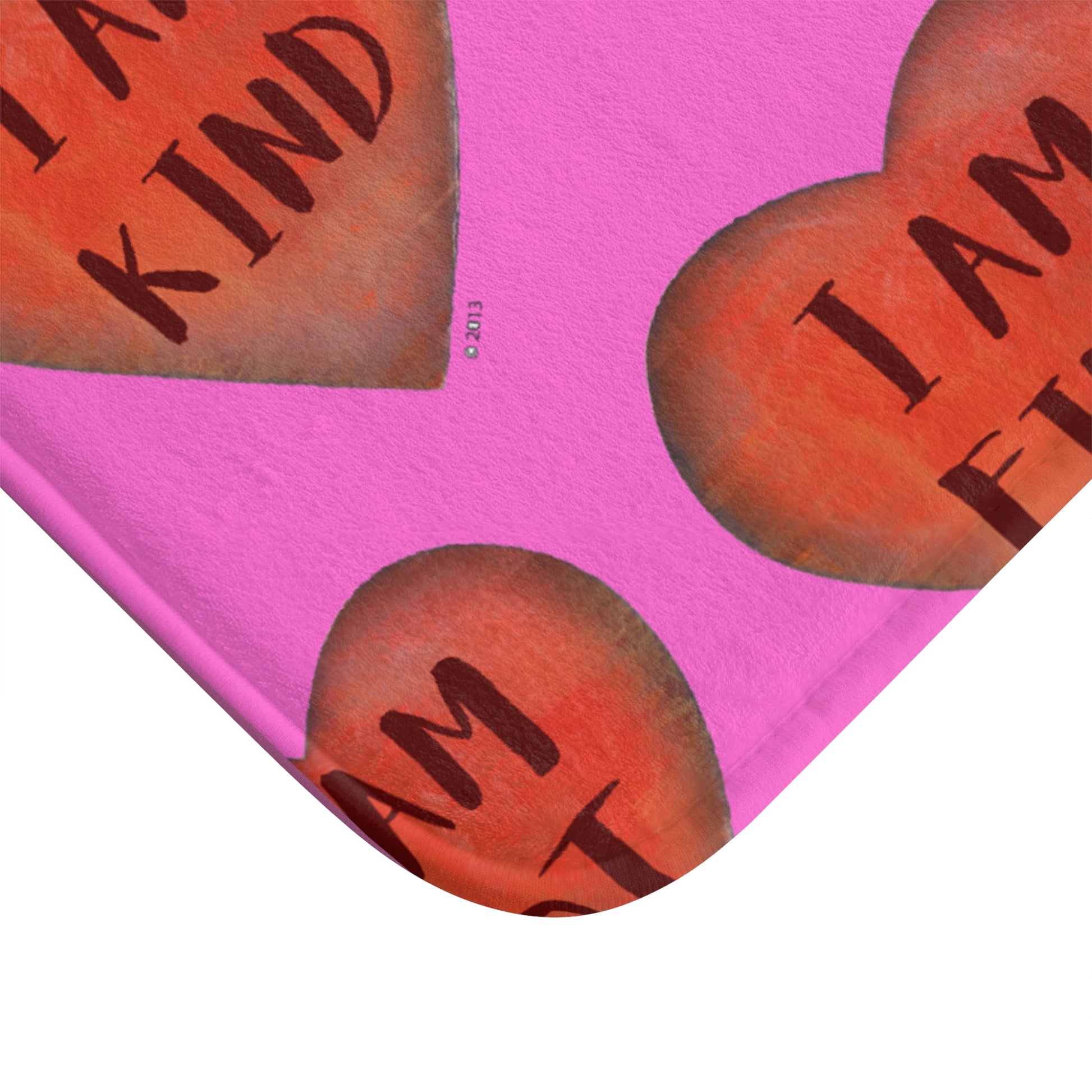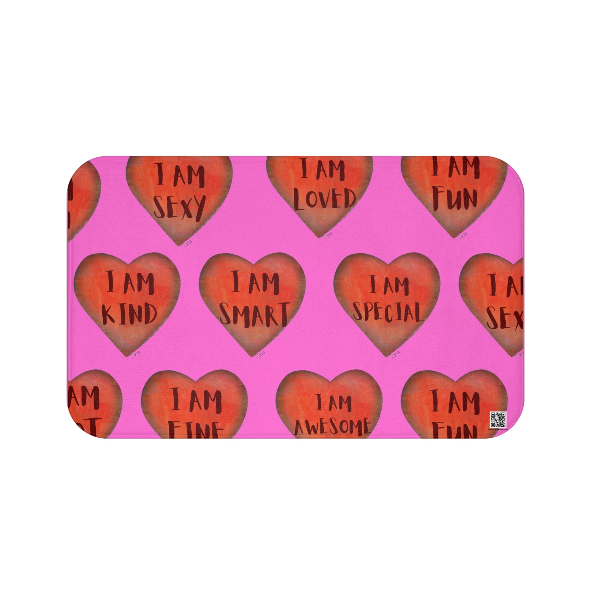 Bath Mat - Pink Heart Bathroom mat - Unique Bath mat - Motivational Hearts