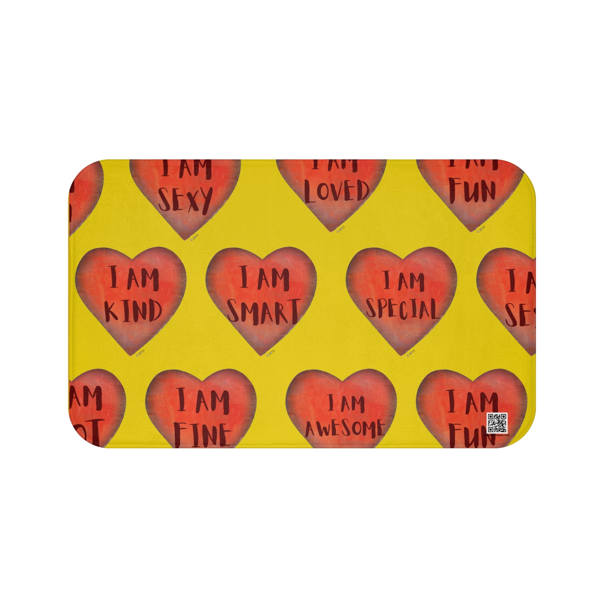 Bath Mat - Yellow Heart Bathroom mat - Unique Bath mat - Motivational Hearts