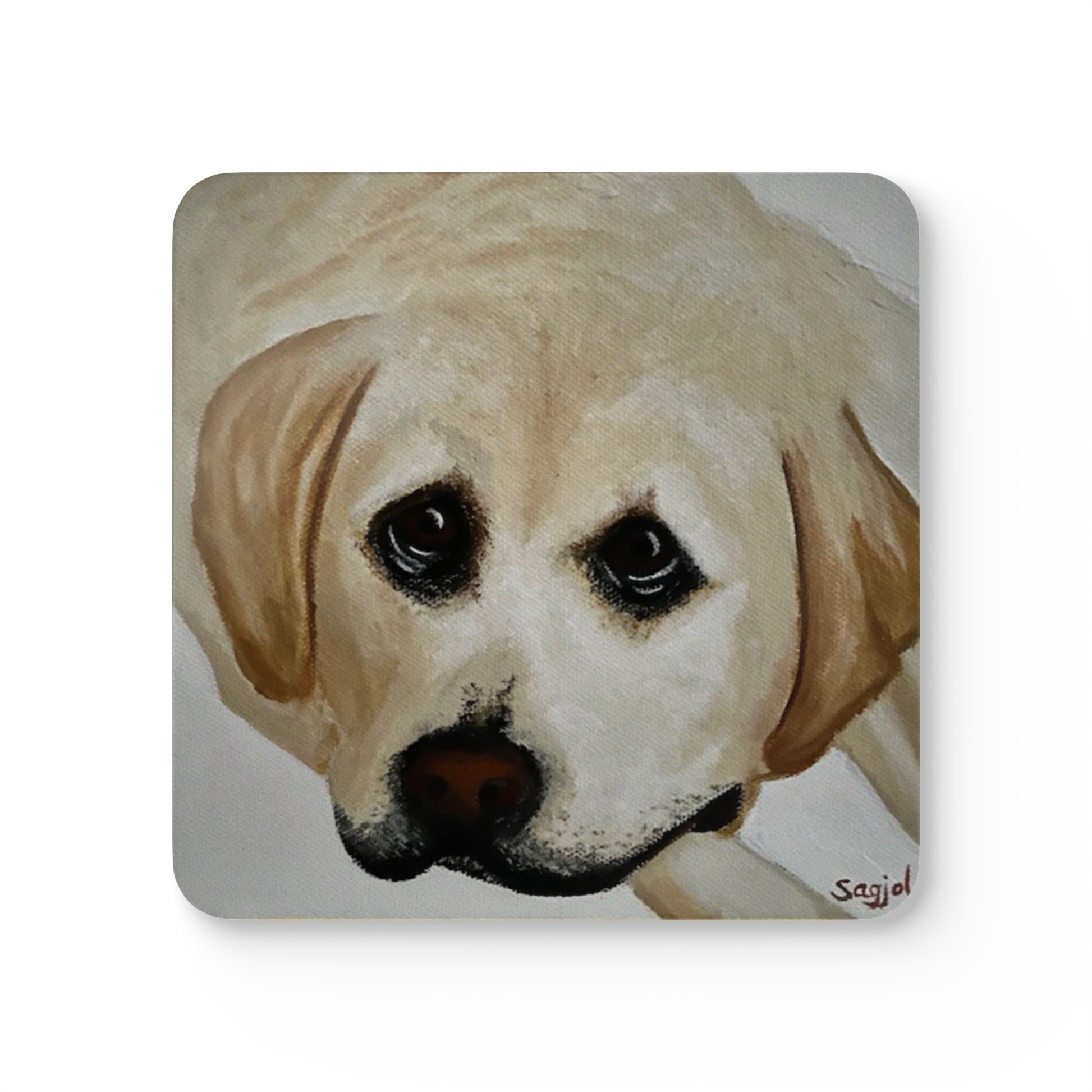 Add a touch of whimsy to your home decor with this Corkwood Coaster Set featuring my Yellow Labrador  "Cooper" original hand painted art. These drinks coasters offer a vibrant and fun atmosphere to your coffee table or dining area. Perfect for art lovers and those looking to protect their surfaces in style. Great for gifting during Valentine's Day, mothers day, House Warming, or any special occasion.