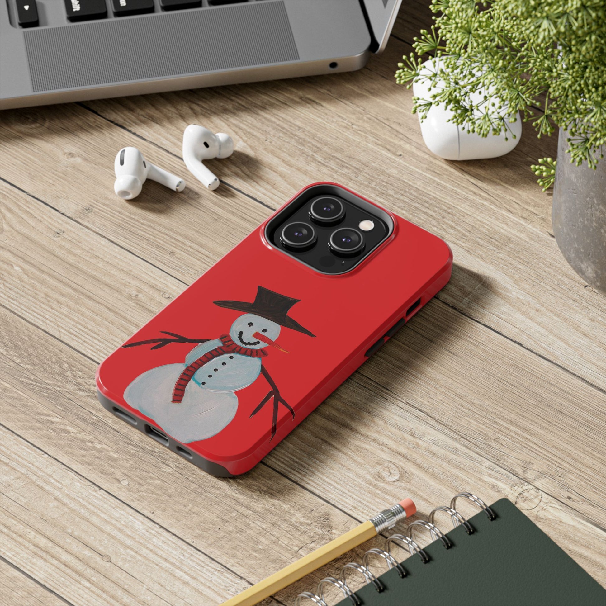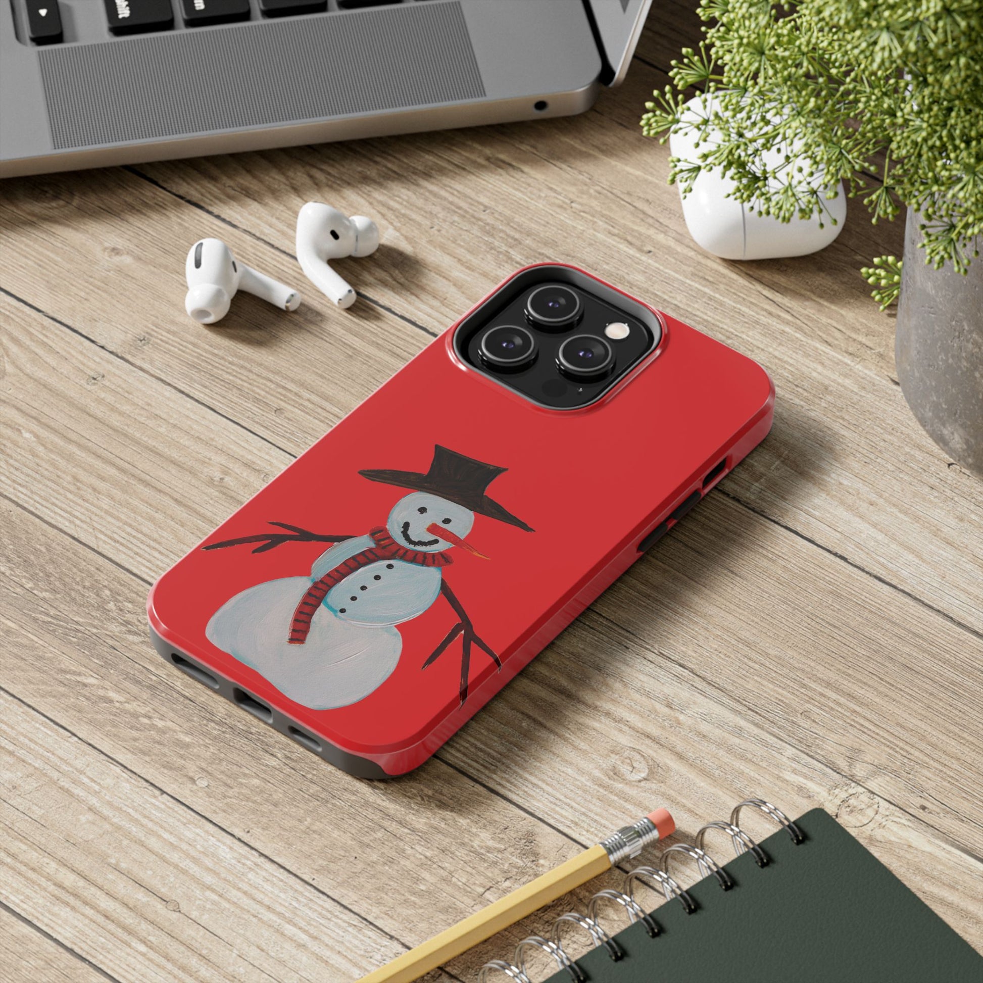 Holiday Snowman Tough Phone Case - Original art phone case - Art phone case - Red phone case