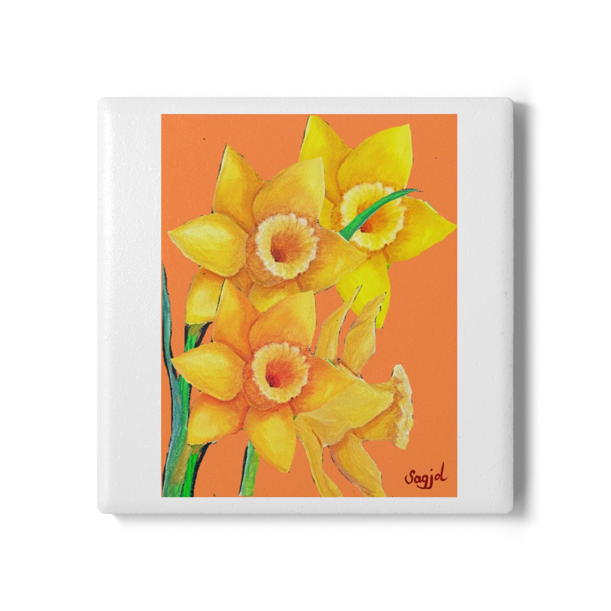 Orange Daffodil's Ceramic Coaster - Spring Floral Home Decor