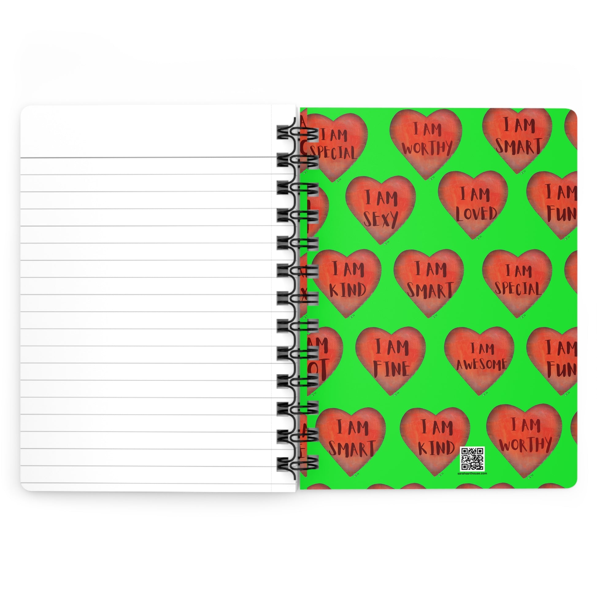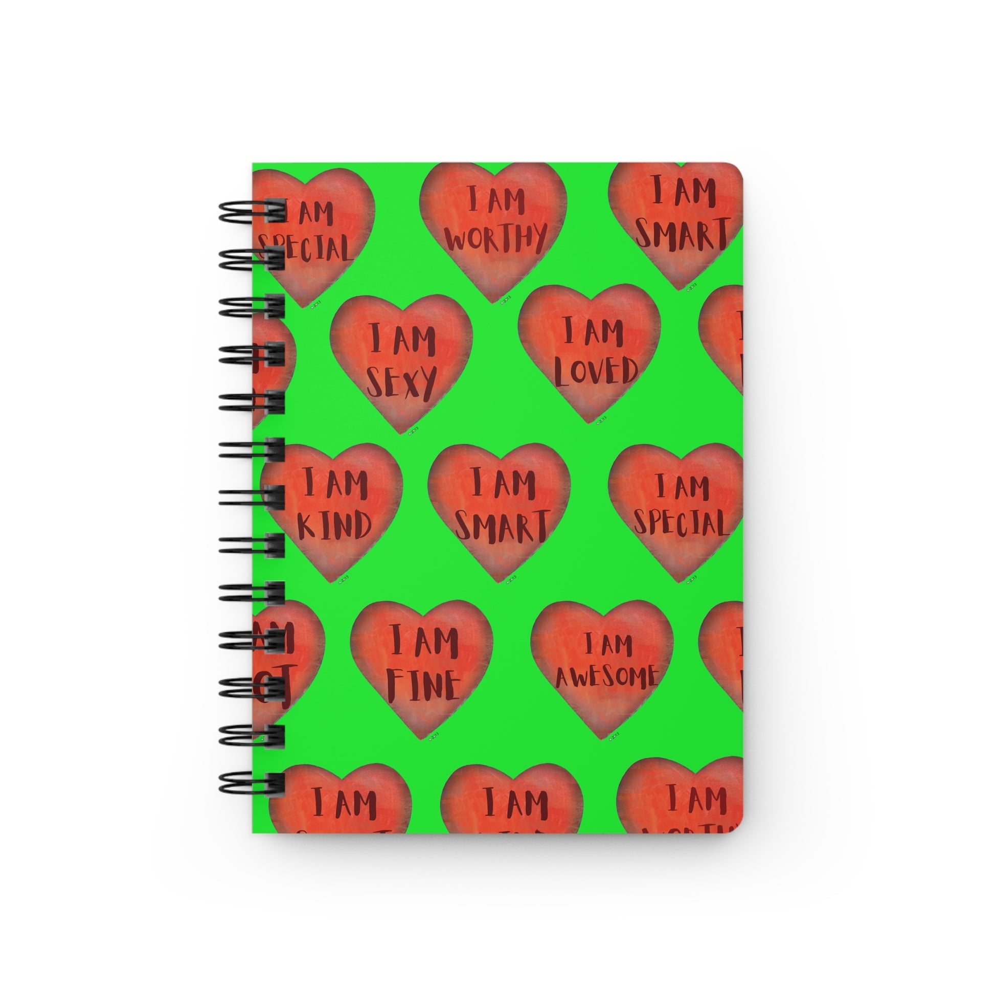 Spiral Bound Journal - "Green Motivational Heart" - Notepad - College Dorm accessory - Desktop notebook