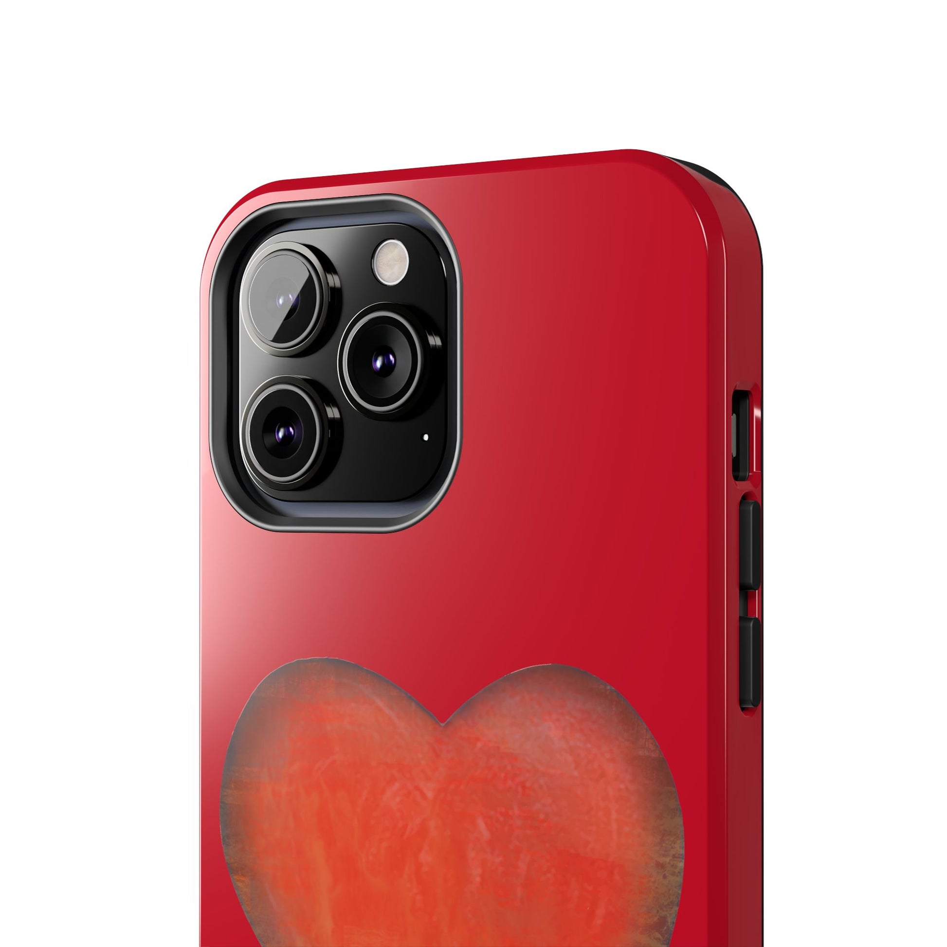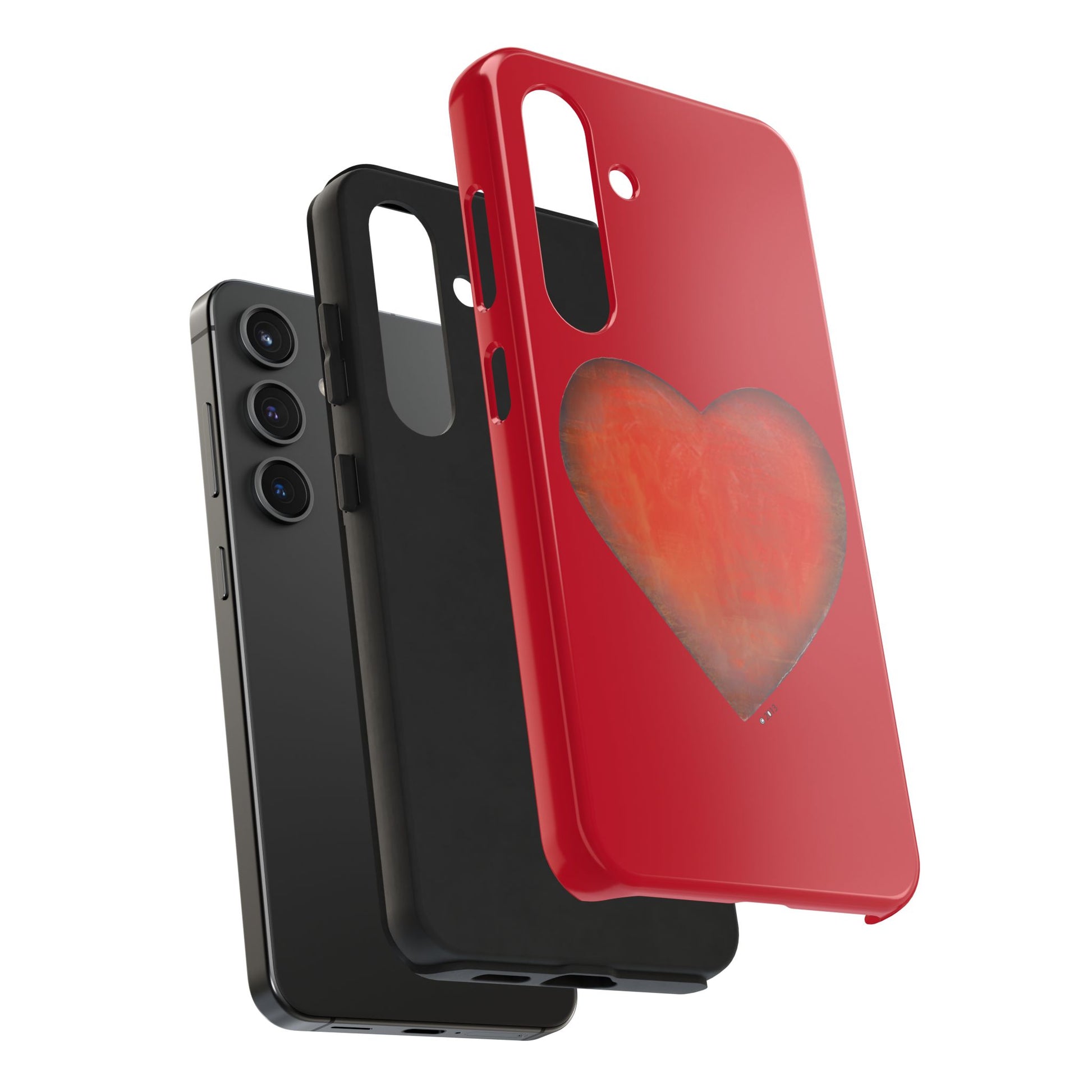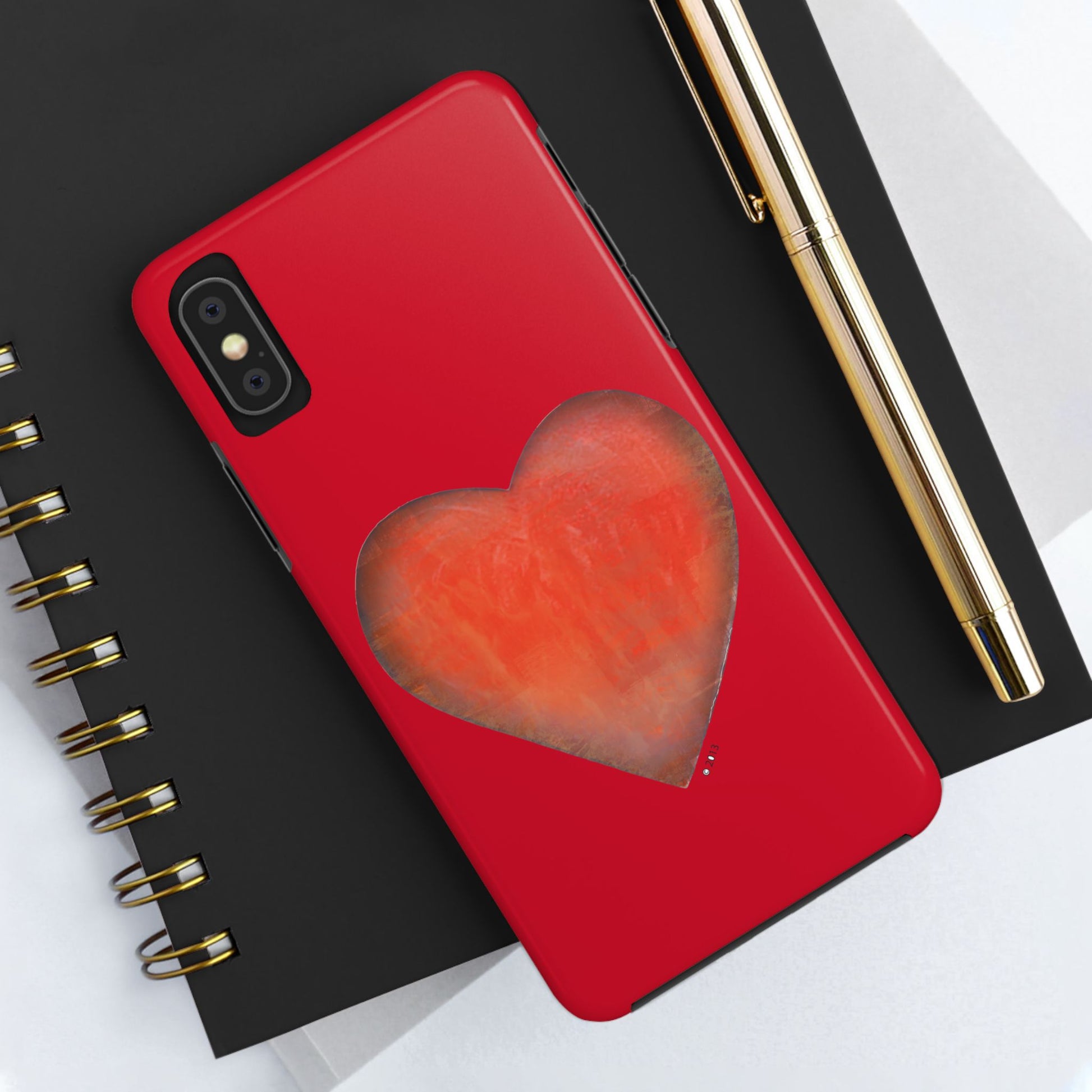 A red phone case perfect for Valentine's Day gifting. Hand painted heart by SAGJOL. This tough phone case is designed to provide maximum protection for your phone while adding a pop of color. Ideal for those who want a durable yet stylish phone accessory. Perfect for Valentine's Day and everyday use.