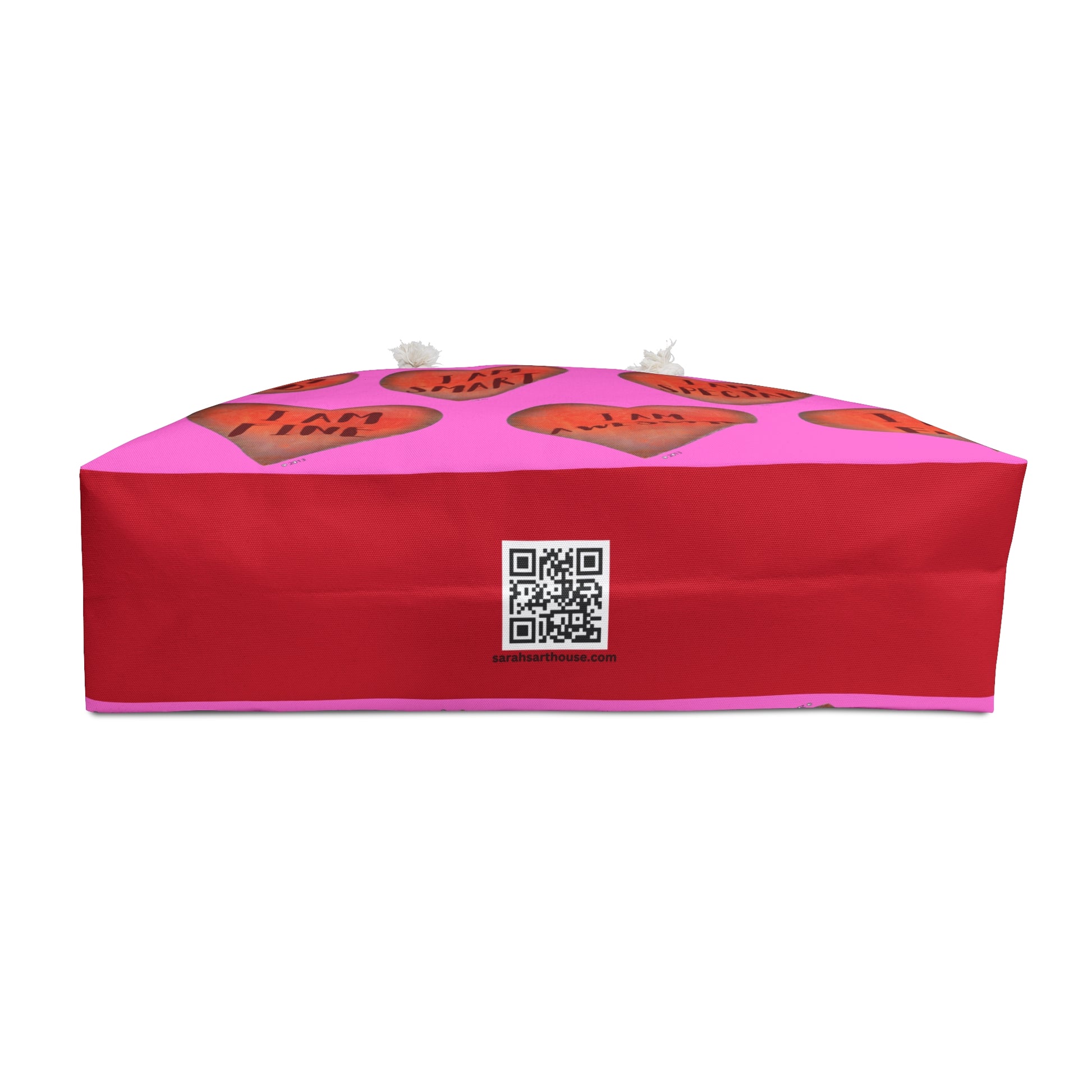 Weekender Bag - Fun Colorful Beach or Weekend Bag Perfect for Mother's Day Gift - Pink Hand painted Heart art bag - Cruise bag