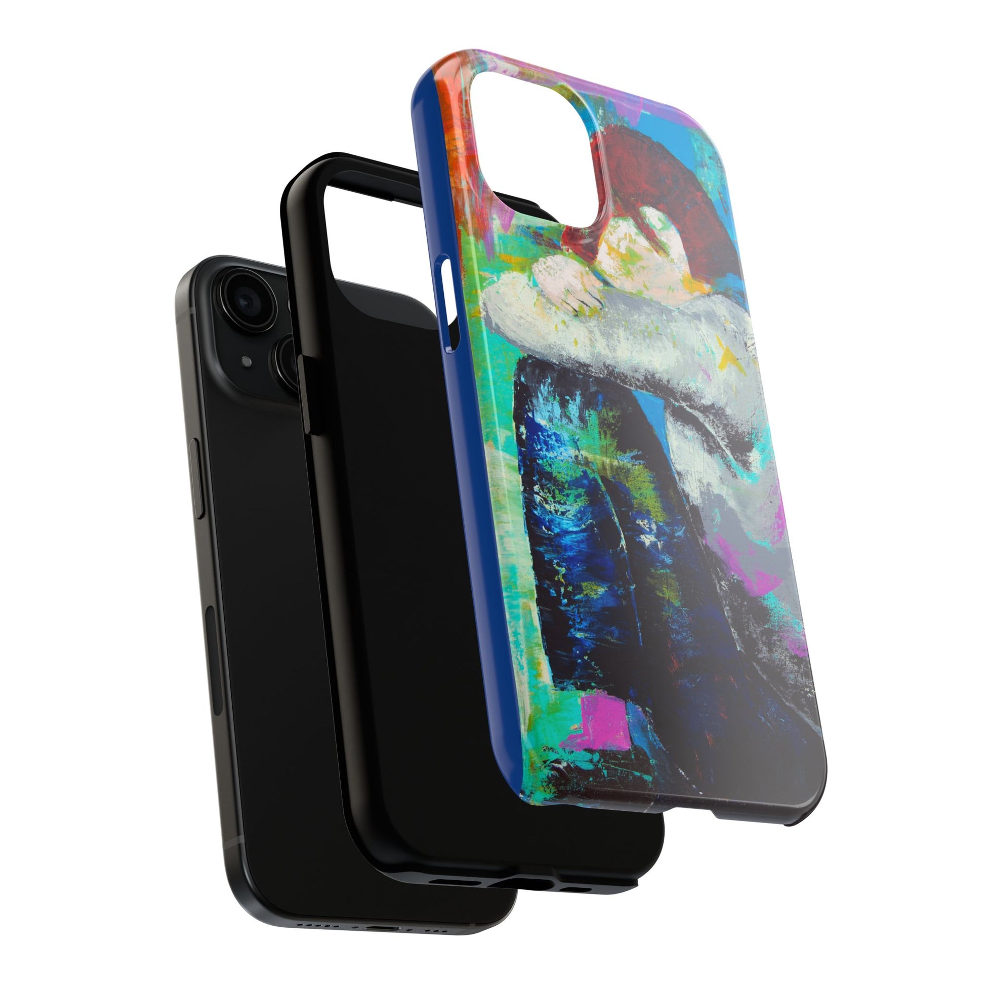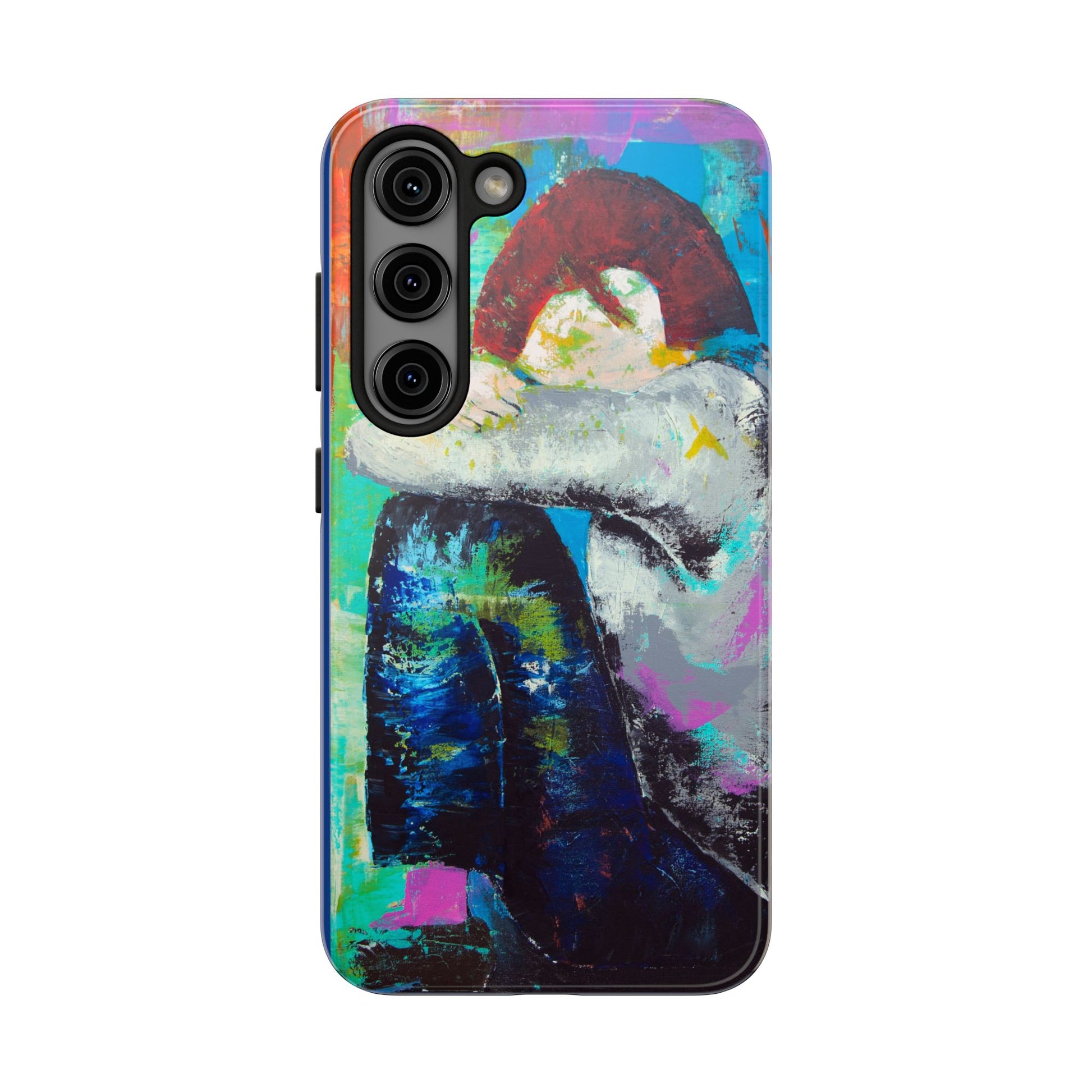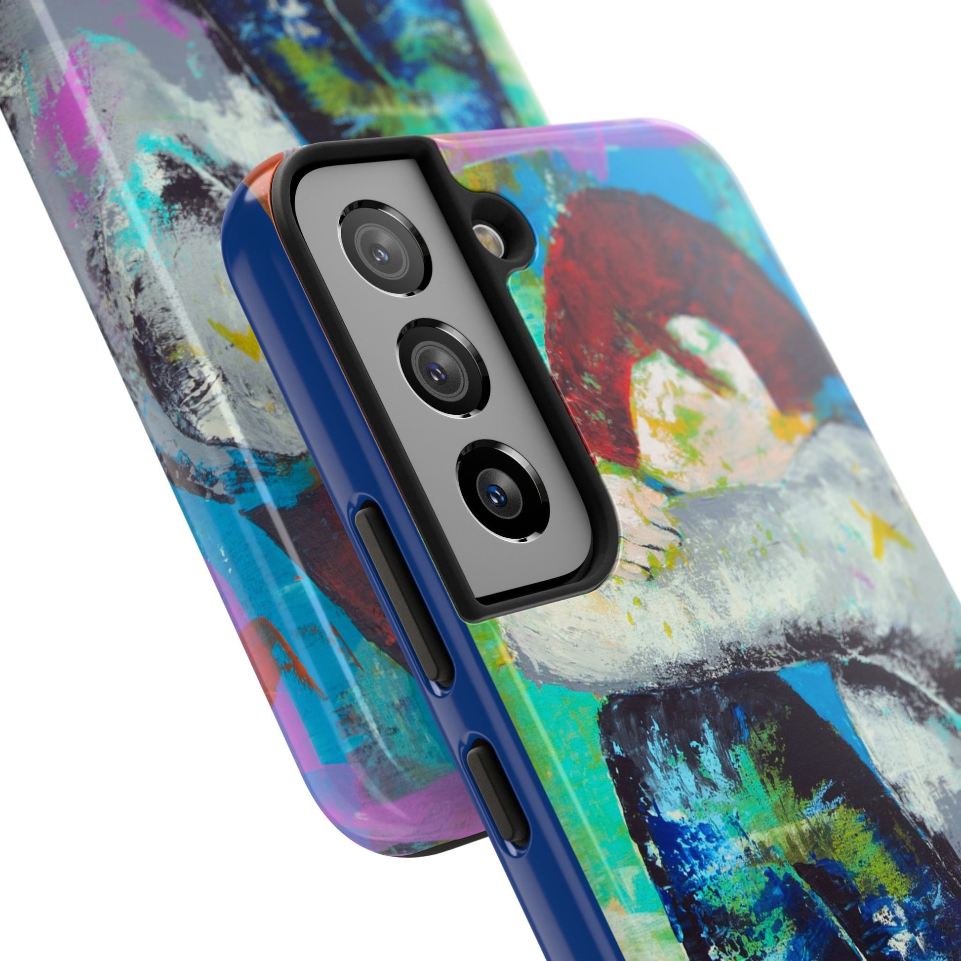 Colorful, original art Tough Phone Cases featuring "Tommy" hand painted by SAGJOL. These cases are extremely strong and impact resistant, with a lay-flat bezel to protect the screen. The glossy finish adds a vibrant touch to your phone while providing excellent resistance to outdoor weathering. Perfect for those looking for durable phone protection with a pop of color.